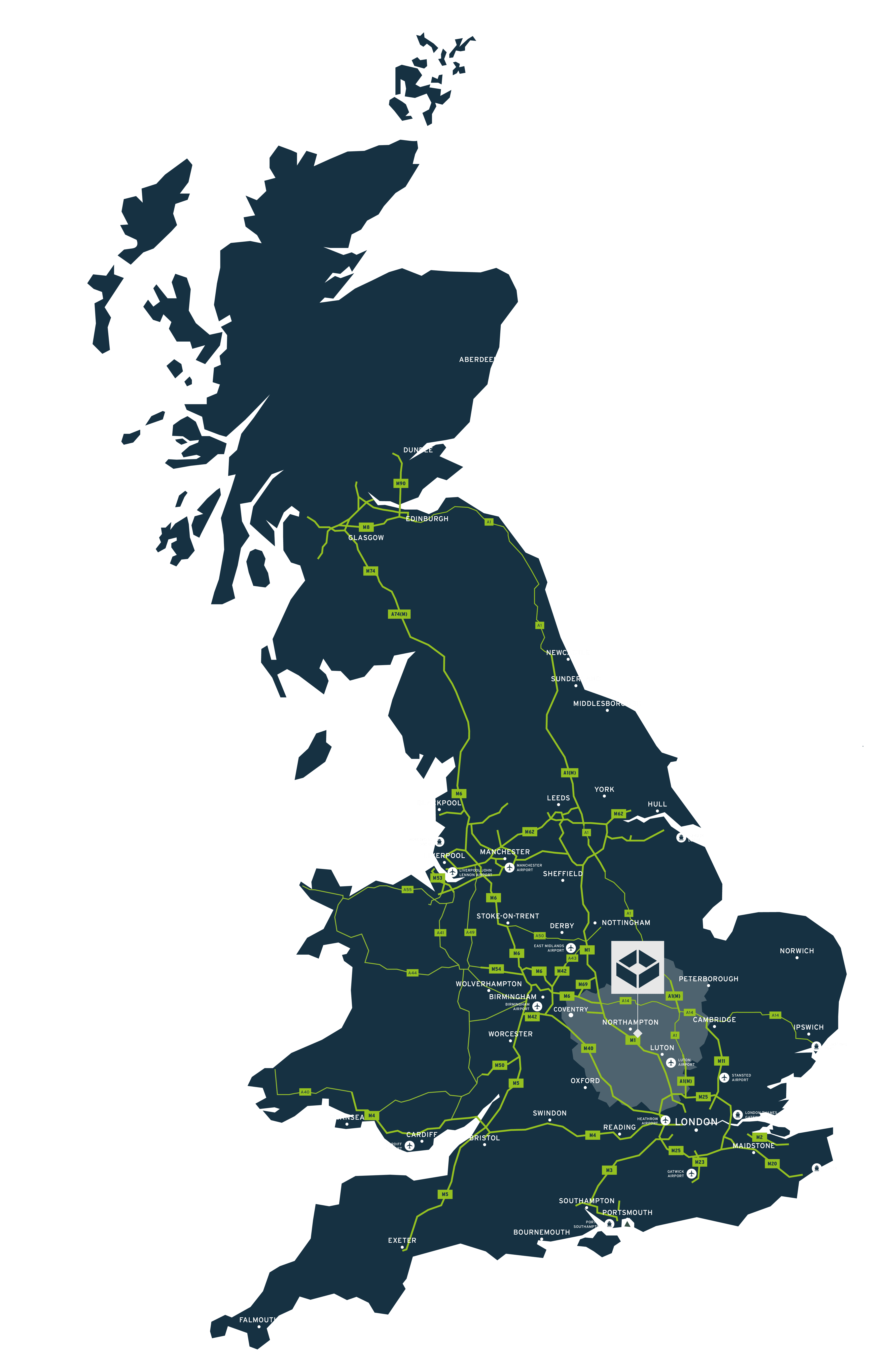 Positioned within the UK’s Logistics Golden Triangle, immediate access to Bedford Road provides direct routes into Northampton town centre, with the M1 motorway close by, supporting efficient regional and national distribution.